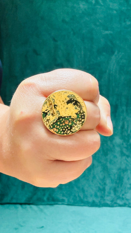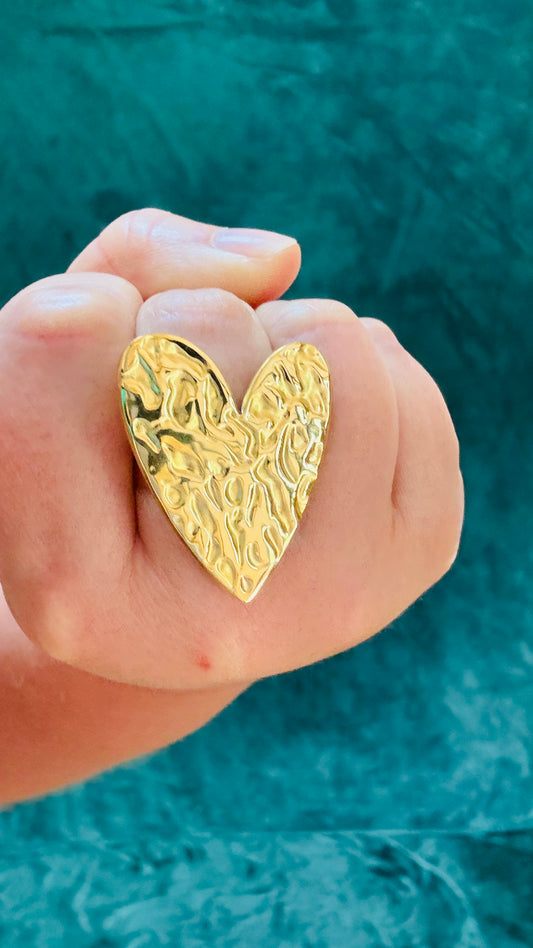 Bague gros cœur doré inoxydable réglable