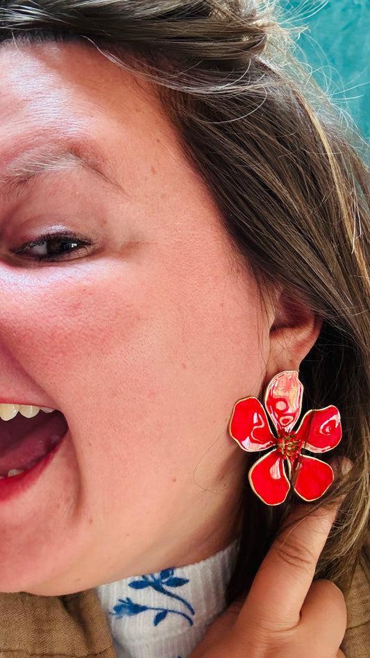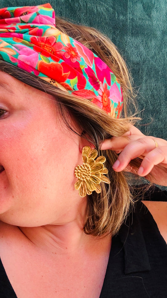 Boucle d'oreille doré Florence : fleur orange en acier inoxydable