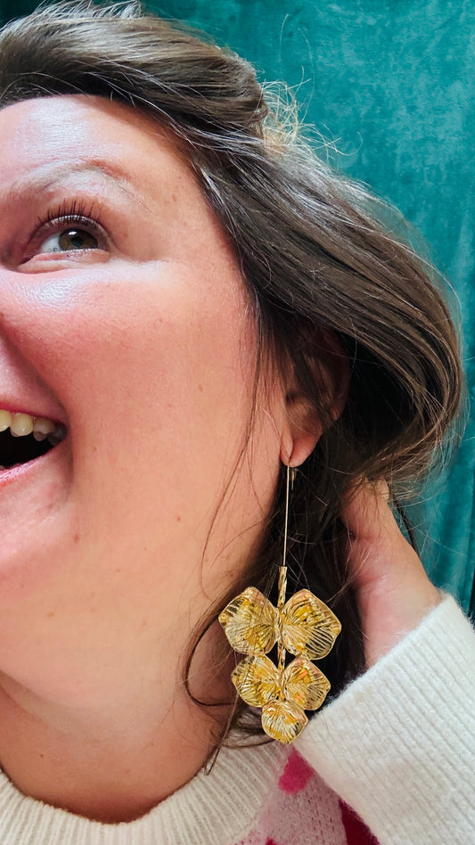 Boucle d'oreille Eglantine - dorée longue acier inoxydable