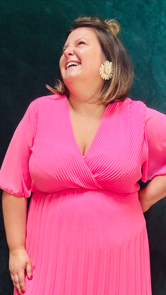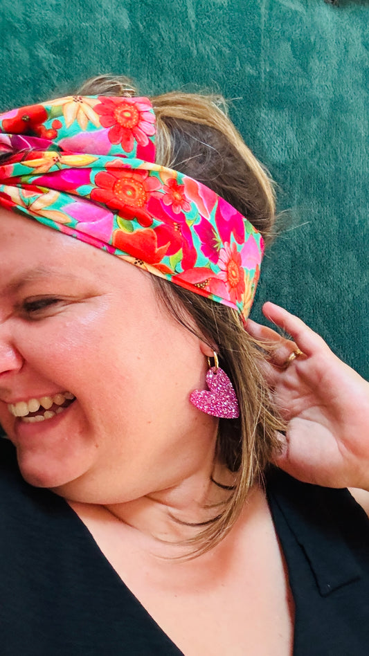 Boucle d'oreille Valentine - coeur rose et paillettes en plexi
