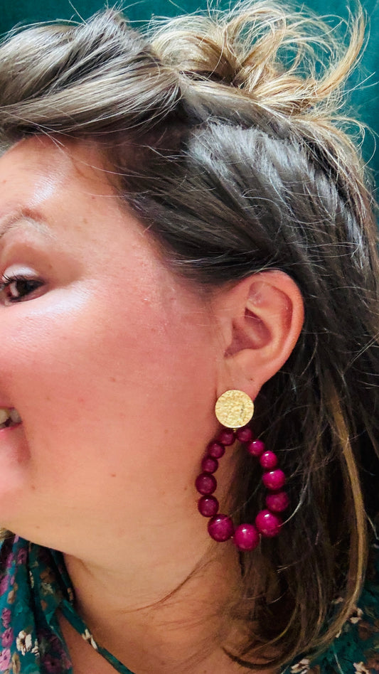 Boucle d'oreille Prunette- dorée grosse perle violette prune acier inoxydable