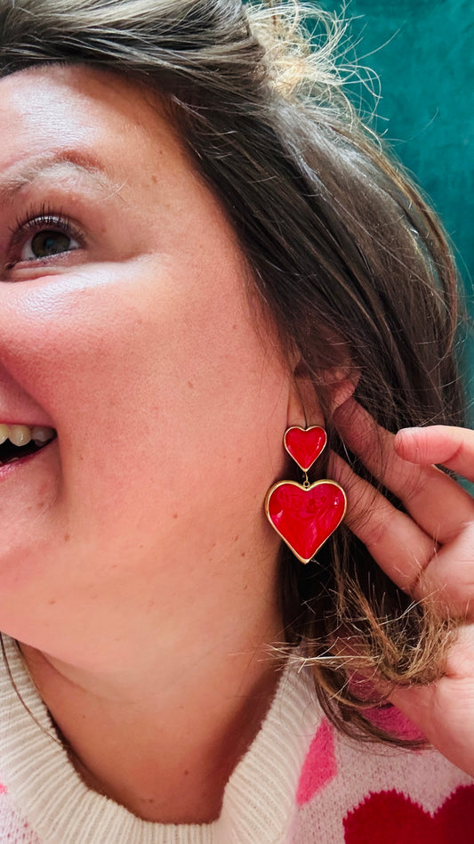 Boucle d'oreille Valentina - double coeur rouge acier inoxydable