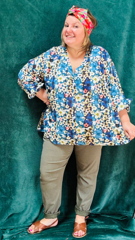 Blouse Flora - grande taille unique fleuris coton et soie