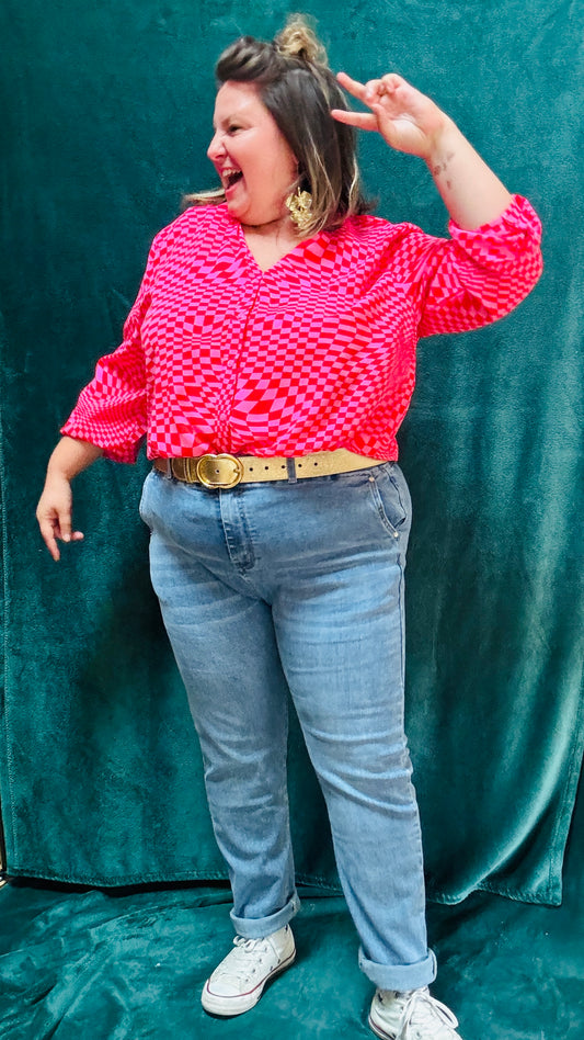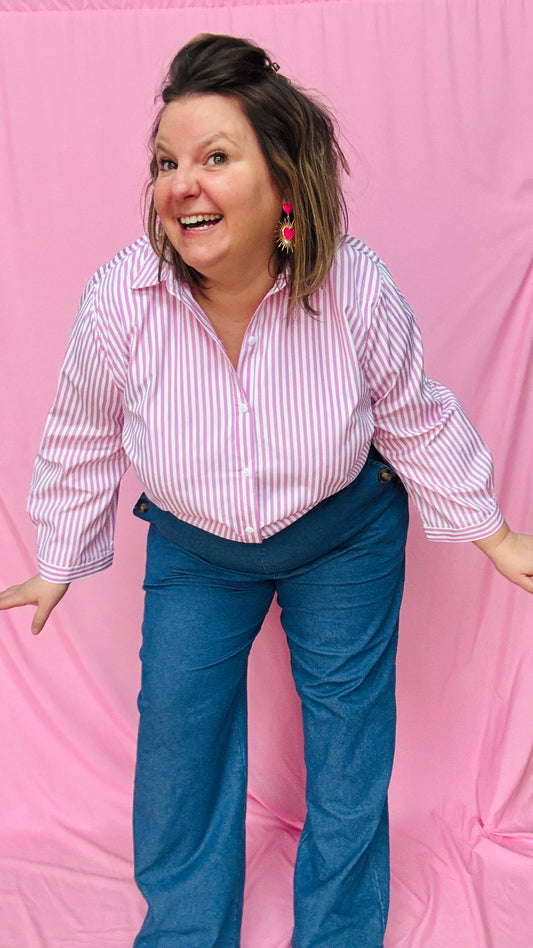 Chemise Léa- grande taille rayée rose et blanche
