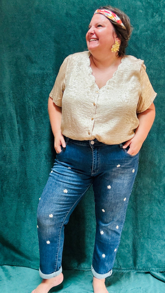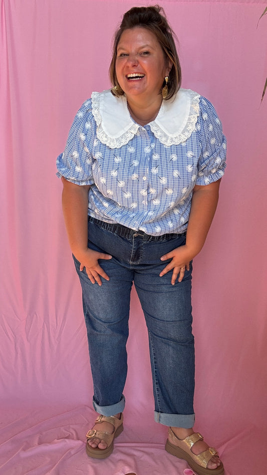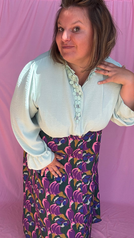 Blouse Flora- grande taille unie détail fleurs col
