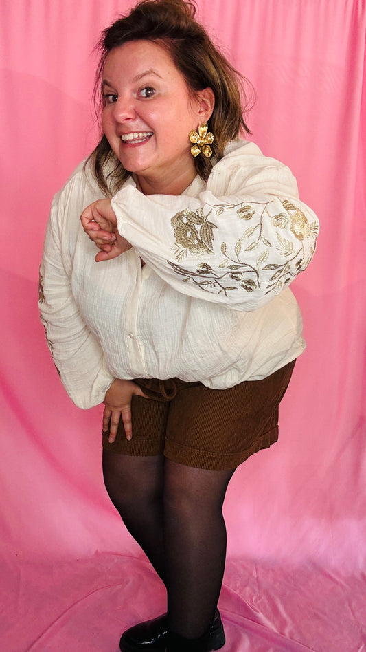 Blouse Bolouna - grande taille écru coude détail broderies dorées