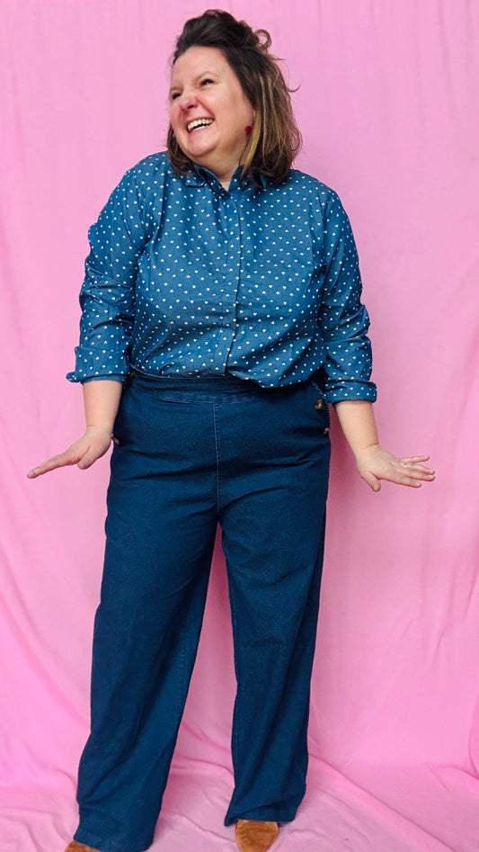 Chemise Valentina - grande taille bleu motifs petits coeurs blanc