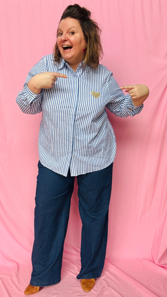 Chemise Corason - grande taille rayée blanc et bleu détail coeur doré