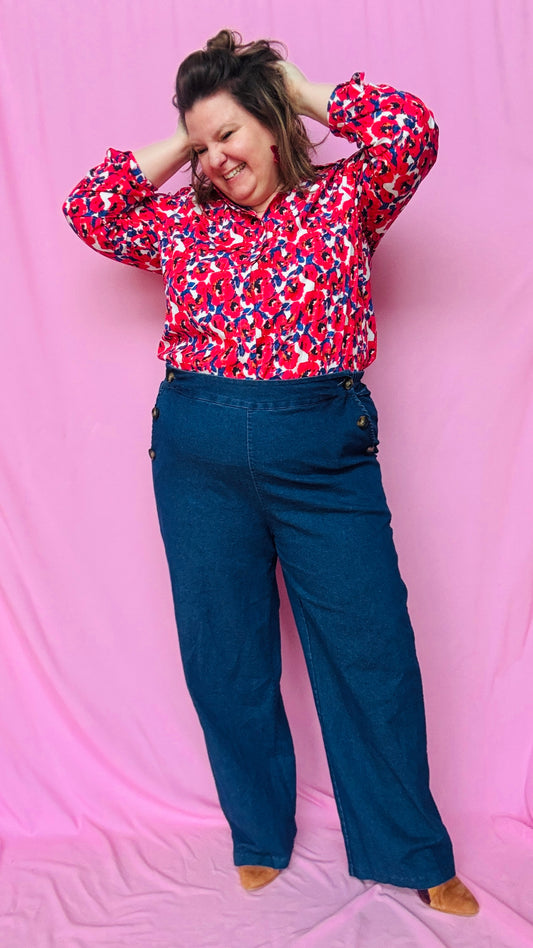 Blouse Coco - grande taille fleurie rouge blanche et bleu roi