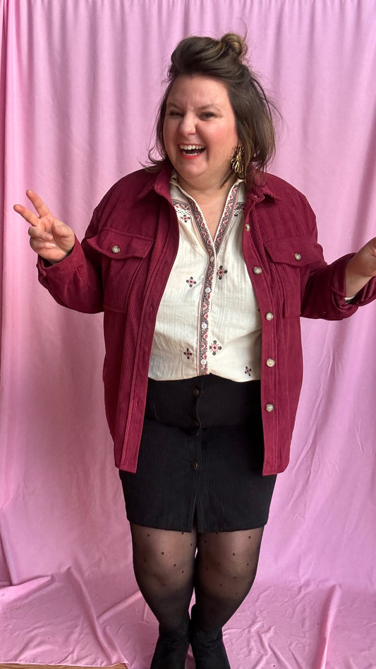 Veste chemise Juliette - grande taille velour bordeaux