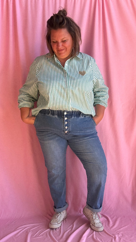 Chemise Léa- grande taille rayée rose et blanche
