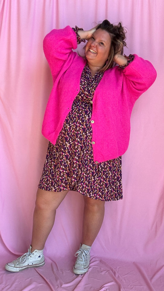 Pull gilet Tom - grande taille uni rose fuchsia