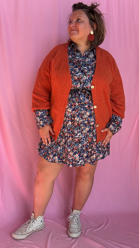 Robe Justine - grande taille longue motif fleuris orange et rose