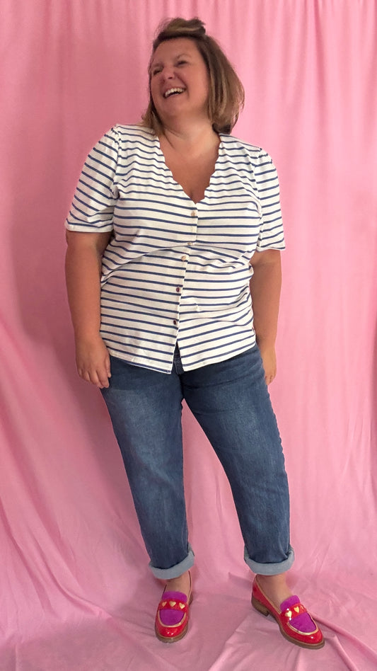 Top Marina - grande taille manche courte marinière col V boutons