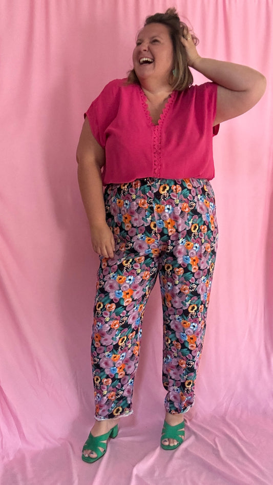 pantalon Dalia- grande taille léger et fluide motifs fleuris