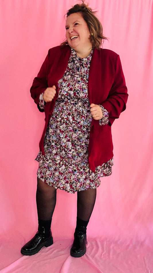Robe Anne-Laure - grande taille manche longue motifs liberty bordeaux ou bleu