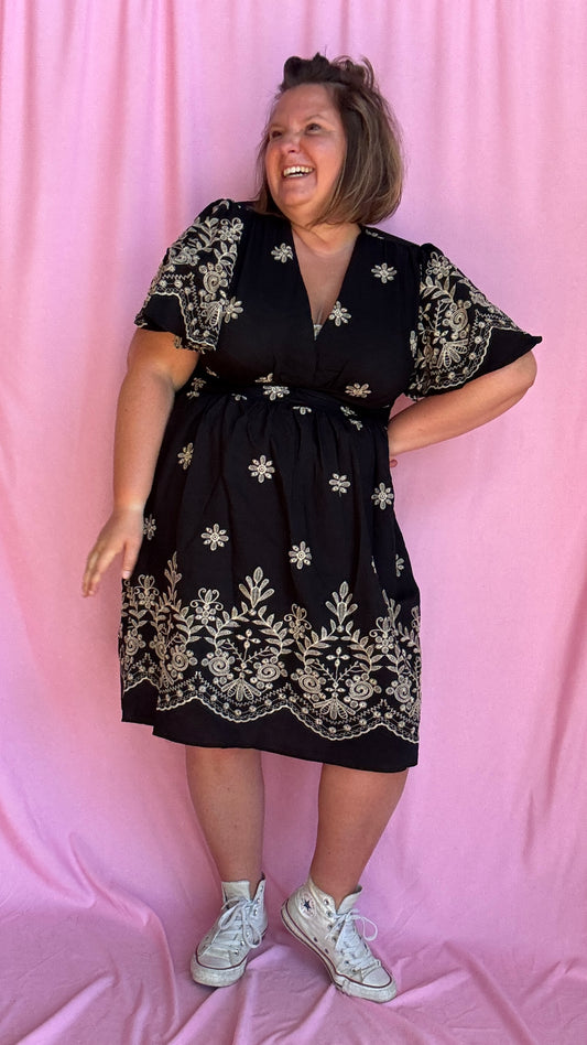 Robe Maryline- grande taille noire avec décolleté dos et taille