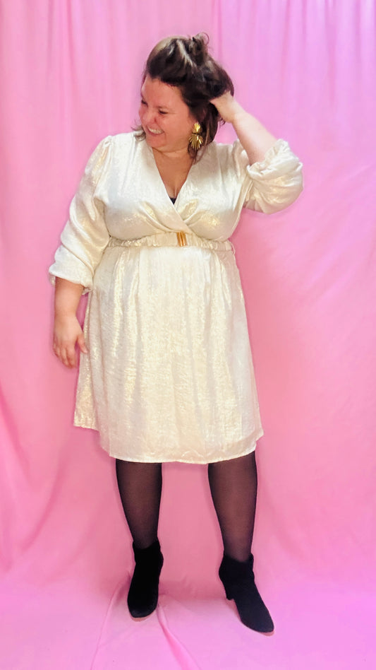 Robe Reine - grande taille manche longue motifs beige bordeaux rosé