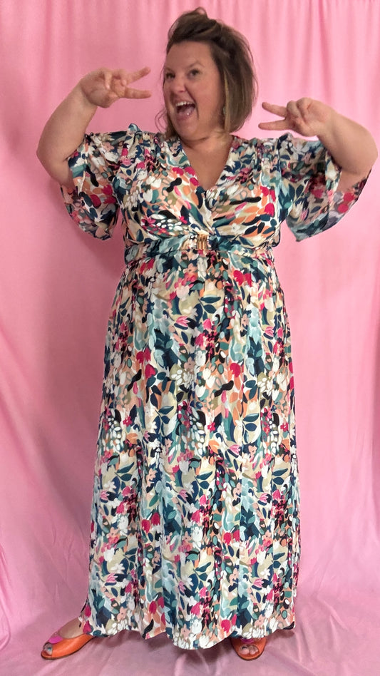 Robe longue Solveig- robe grande taille colorée motifs fleuris