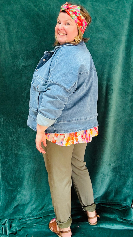 Veste Véro - grande taille jean noir ou bleu canard mi mongue