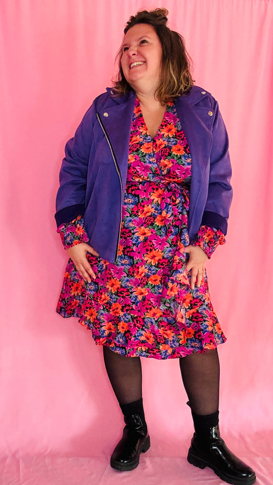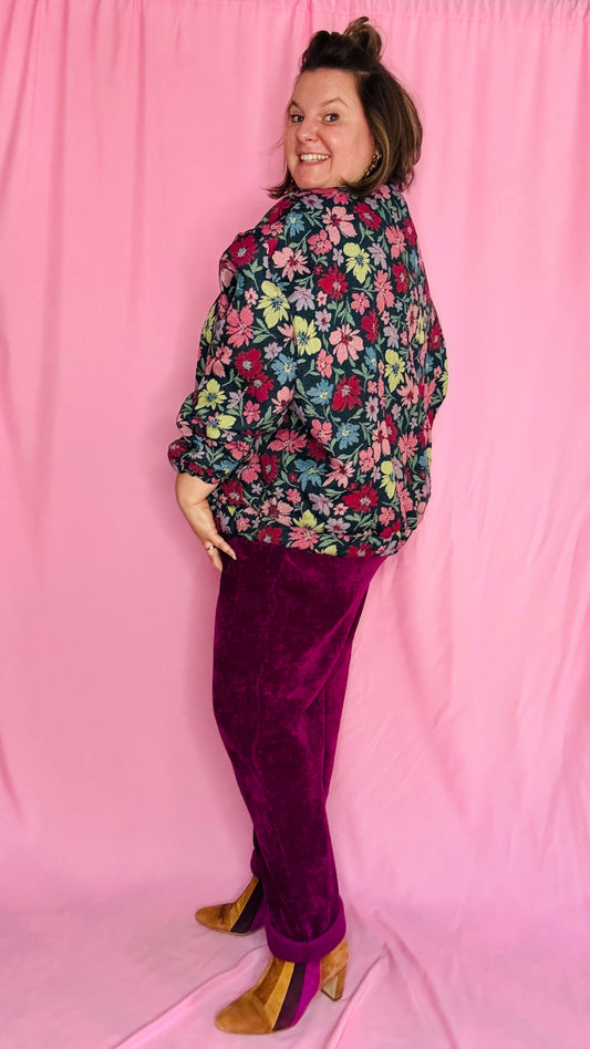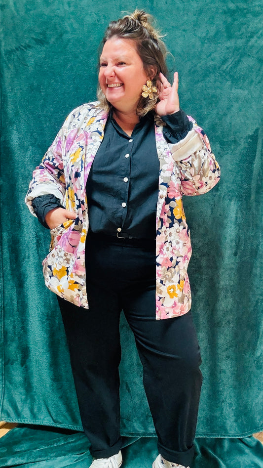Veste Sylvie - grande taille bomber tissu épais fleuris rose ou vert