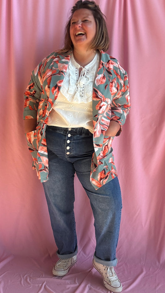 Veste blazer Laora - grande taille fleuri vert d'eau et orange