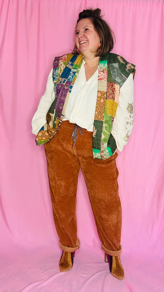Veste Maréva - grande taille sans manche patchwork coloré kaki