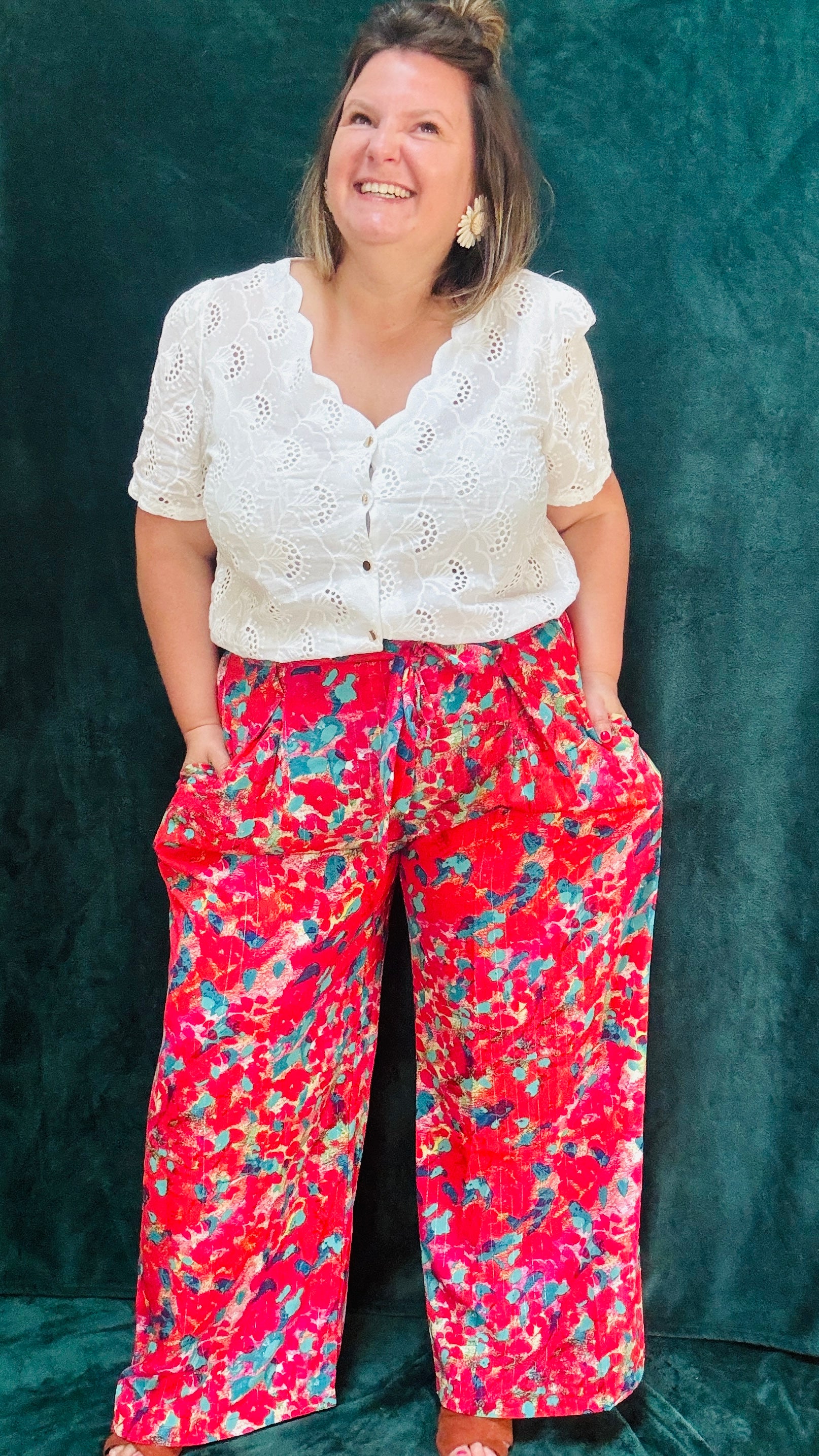 Pantalon Cléo - grande taille fluide taille haute très coloré